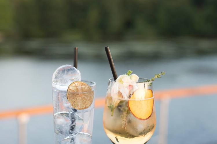 Für besondere Anlässe mixt Barracuda Ihre Cocktails mit eingefrorenen Blüten in den Eiswürfeln.